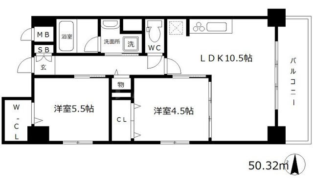 2LDK 50.32m2 |