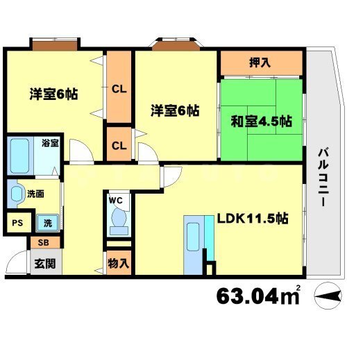 3LDK 63.04m2 |
