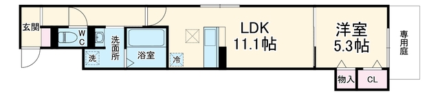 | 部屋設備 | TV付モニターホン / 下駄箱 / エアコン / フローリング / 床下収納 / 照明器具 / バルコニー / 庭 / シャワー / 浴室乾燥機 / 洗髪洗面化粧台 / 追焚き / バストイレ別 / 角部屋 / シャワー付トイレ / クロゼット / カウンターキッチン / システムキッチン |