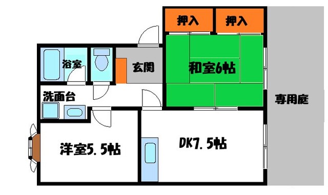 | 部屋設備 | TV付モニターホン / ガスコンロ / 庭 / シャワー / 室内洗濯機置場 / バストイレ別 / 2人入居 / 洗面所独立 |