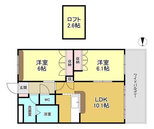 | 部屋設備 | TV付モニターホン / 下駄箱 / ガスコンロ(コンロ(2口)) / エアコン / フローリング / 床下収納 / ロフト / バルコニー / シャワー / 浴室乾燥機 / 洗髪洗面化粧台 / 追焚き / 室内洗濯機置場 / バストイレ別 / 2人入居 / シャワー付トイレ / クロゼット / 洗面所独立 / カウンターキッチン |