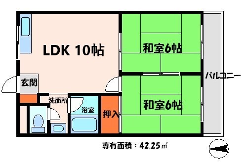 2LDK 42.25m2 |