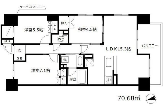 3LDK 70.68m2 |