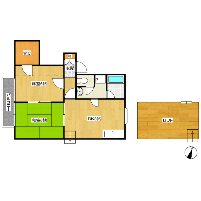 | 部屋設備 | 下駄箱 / エアコン / ウォークインクロゼット / ロフト / バルコニー / 洗髪洗面化粧台 / 室内洗濯機置場 / バストイレ別 / シャワー付トイレ / 洗面所独立 |