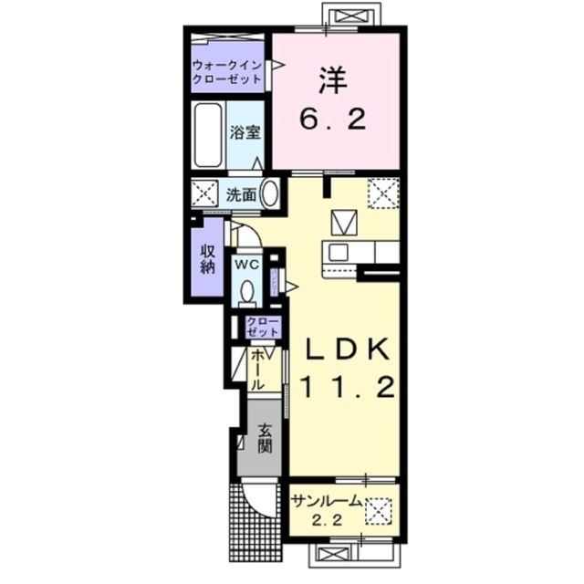 | 部屋設備 | TV付モニターホン / 下駄箱 / エアコン / ウォークインクロゼット / 床下収納 / トランクルーム / 浴室乾燥機 / 洗髪洗面化粧台 / 追焚き / 室内洗濯機置場 / バストイレ別 / シャワー付トイレ / クロゼット / 洗面所独立 |