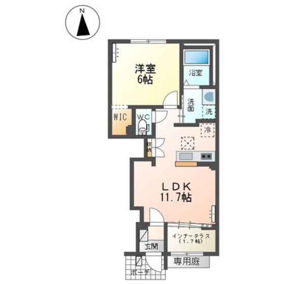 | 部屋設備 | TV付モニターホン / 下駄箱 / エアコン / フローリング / ウォークインクロゼット / 床下収納 / 照明器具 / 庭 / シャワー / 洗髪洗面化粧台 / 室内洗濯機置場 / バストイレ別 / コンロ(コンロ(2口)) / シャワー付トイレ / カウンターキッチン |
