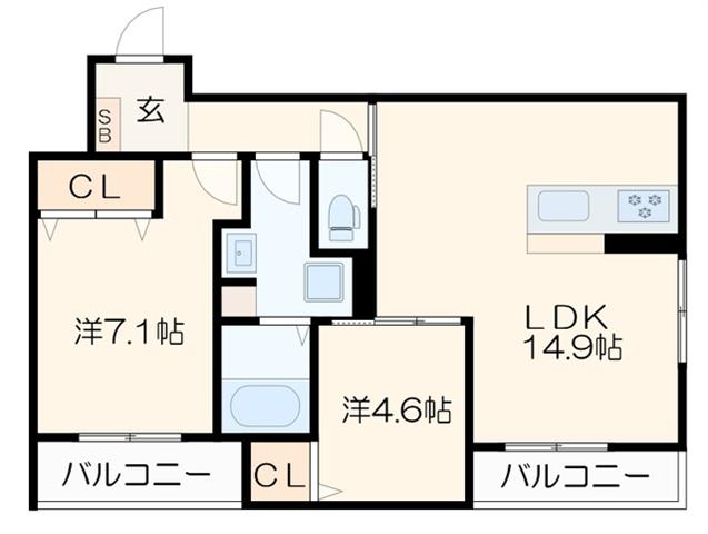 2LDK 61.98m2 |