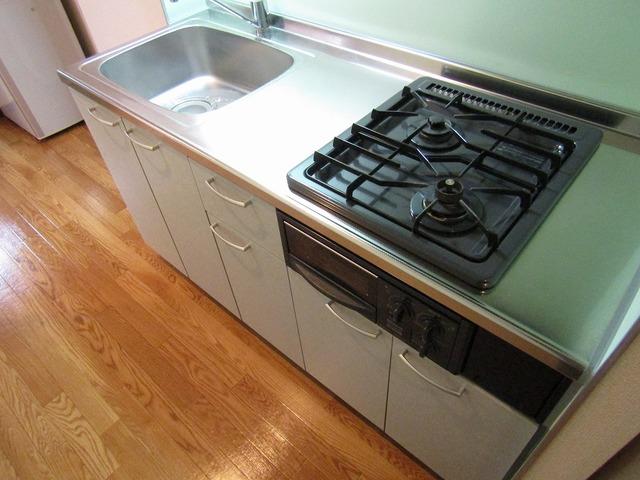 | 部屋設備 | TV付モニターホン / インターホン / 下駄箱 / ガスコンロ(コンロ(2口)) / エアコン / フローリング / バルコニー / シャワー / 浴室乾燥機 / 洗髪洗面化粧台 / 室内洗濯機置場 / バストイレ別 / 2人入居 / クロゼット2ヶ所 / クロゼット / システムキッチン |