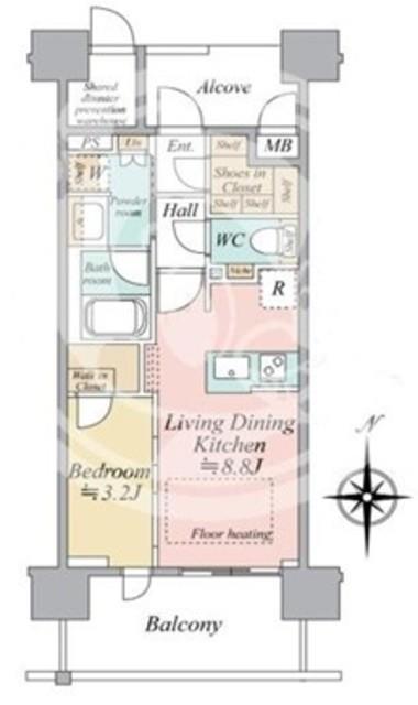 | 部屋設備 | TV付モニターホン / インターホン / ガスコンロ(コンロ(2口)) / フローリング / ウォークインクロゼット / 床暖房 / バルコニー / ウォームレット / シャワー / 浴室乾燥機 / 洗髪洗面化粧台 / 追焚き / 室内洗濯機置場 / バストイレ別 / 洗面所独立 / カウンターキッチン / システムキッチン |