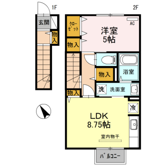 | 構造 | 軽量鉄骨造 | 方位 | 南西 | 階数/総階数 | 2階/2階建て |