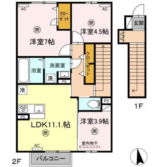 | 構造 | 軽量鉄骨造 | 方位 | 南 | 階数/総階数 | 2階/2階建て |