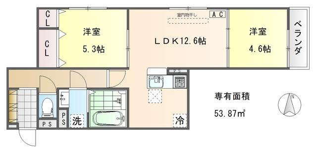 2LDK 53.87m2 |