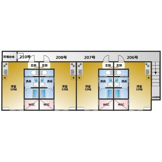 | 部屋設備 | TV付モニターホン / 下駄箱 / エアコン / フローリング / ウォークインクロゼット / 照明器具 / シャワー / 室内洗濯機置場 / バストイレ別 / コンロ(コンロ(2口)) / シャワー付トイレ / 洗面所独立 |
