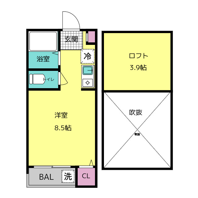 | 部屋設備 | TV付モニターホン / インターホン / 下駄箱 / ガスコンロ / エアコン / 冷房 / 暖房 / フローリング / ロフト / バルコニー / シャワー / バストイレ別 / シャワー付トイレ / クロゼット / システムキッチン |