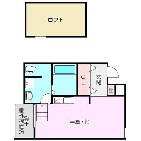 | 部屋設備 | TV付モニターホン / 下駄箱 / ガスコンロ(コンロ(2口)) / エアコン / フローリング / ロフト / バルコニー / シャワー / 室内洗濯機置場 / バストイレ別 / 角部屋 / 上位階なし / クロゼット / 洗面所独立 / システムキッチン |