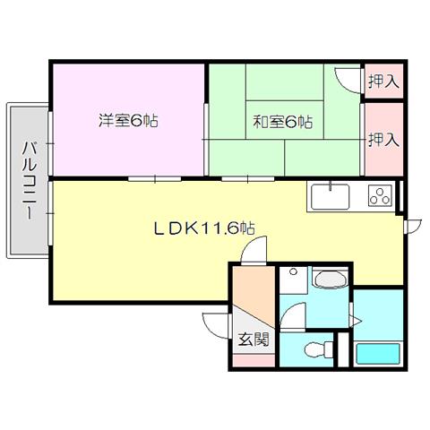 | 部屋設備 | バルコニー / シャワー / 洗髪洗面化粧台 / 室内洗濯機置場 / バストイレ別 / フローリング / ガスコンロ(コンロ(2口)) / 角部屋 / クロゼット2ヶ所 / クロゼット / 洗面所独立 |