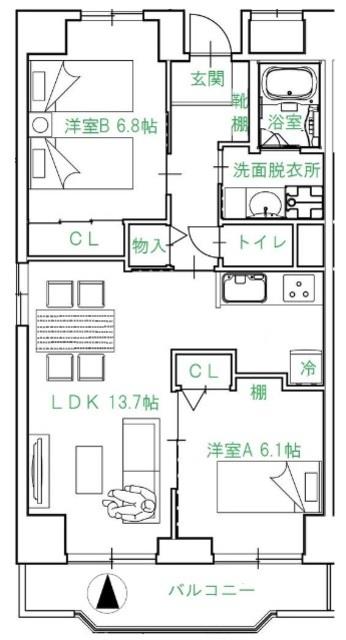 2LDK 60.62m2 |