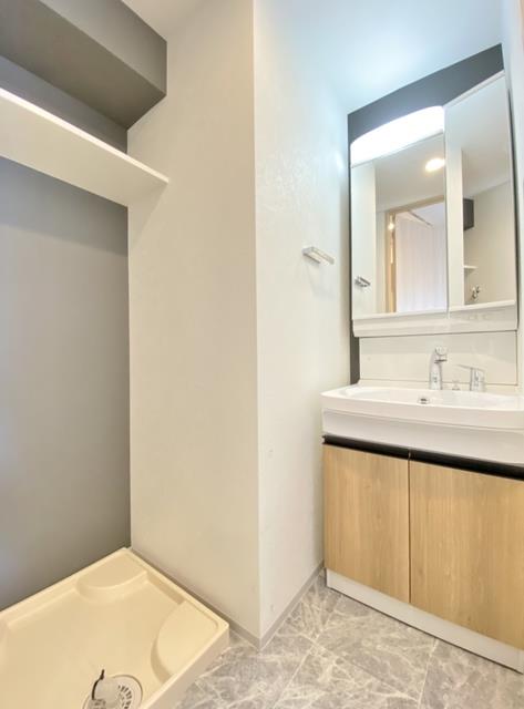 | 部屋設備 | TV付モニターホン / 下駄箱 / ガスコンロ(コンロ(2口)) / エアコン / フローリング / ウォークインクロゼット / バルコニー / ウォームレット / シャワー / 浴室乾燥機 / 洗髪洗面化粧台 / 室内洗濯機置場 / バストイレ別 / 洗面所独立 / カウンターキッチン / システムキッチン |