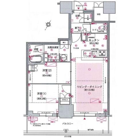 | 部屋設備 | TV付モニターホン / 下駄箱 / ガスコンロ(コンロ(3口)) / エアコン / フローリング / ウォークインクロゼット / 床暖房 / トランクルーム / バルコニー / ウォームレット / シャワー / 浴室乾燥機 / 洗髪洗面化粧台 / 追焚き / 室内洗濯機置場 / バストイレ別 / クロゼット / 洗面所独立 / カウンターキッチン / システムキッチン |