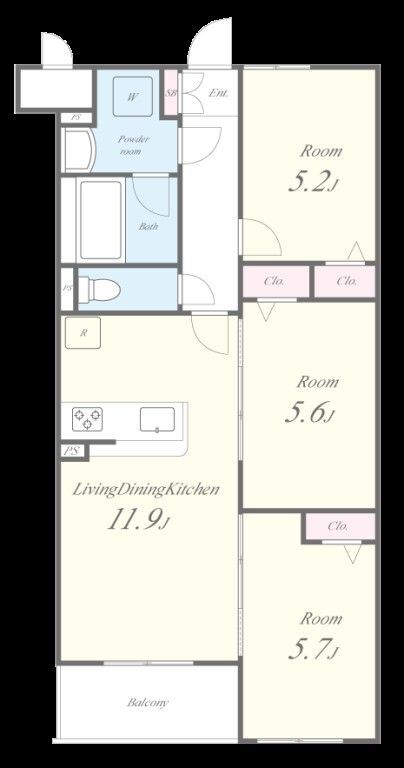 3LDK 62.43m2 |