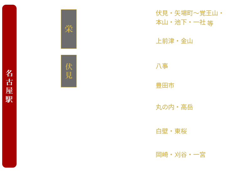 栄・矢場町・伏見・丸の内・上前津・金山