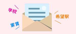 - 【LINEでお部屋探し】学校名と家賃を入力するとオススメ物件が届きます!