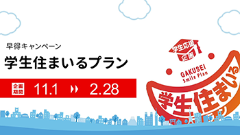 - 【終了しました】家賃発生は希望入居日からでOK!【学生応援企画 早得キャンペーン 学生住まいるプラン】